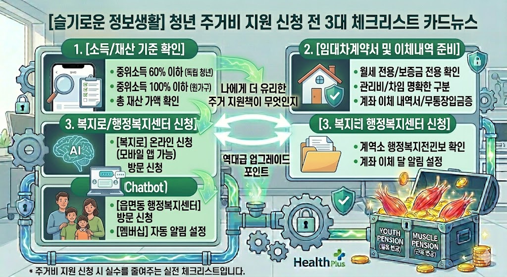 - 실천: 지금 즉시 [복지로] 앱에 접속하여 '마이페이지' -> '맞춤형 급여 안내(멤버십)'를 설정해 내가 받을 수 있는 주거 혜택을 자동 알림으로 받으세요.
